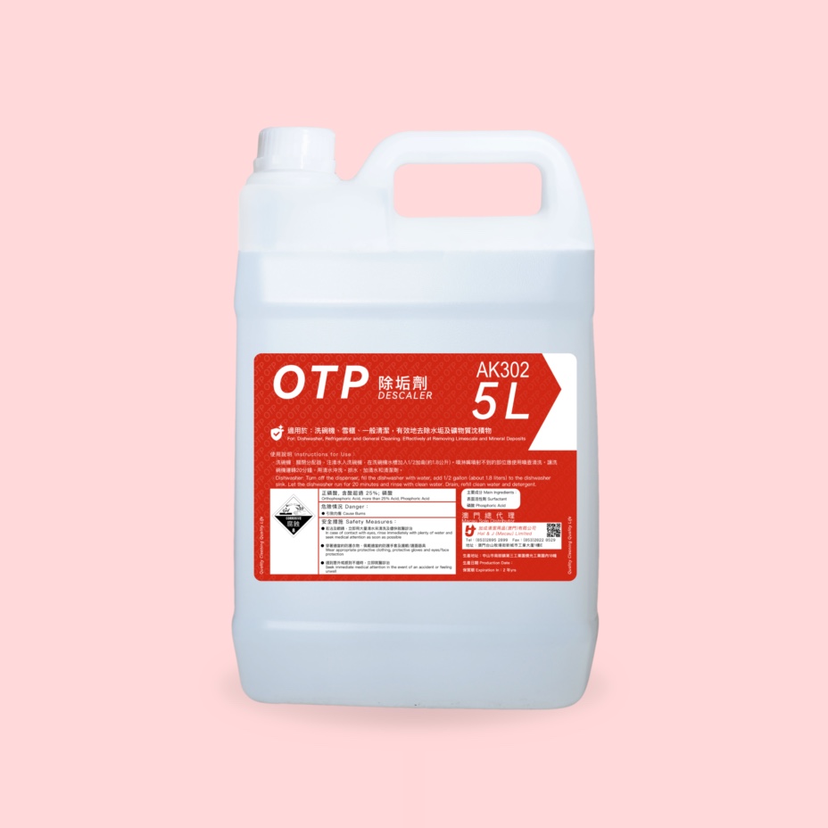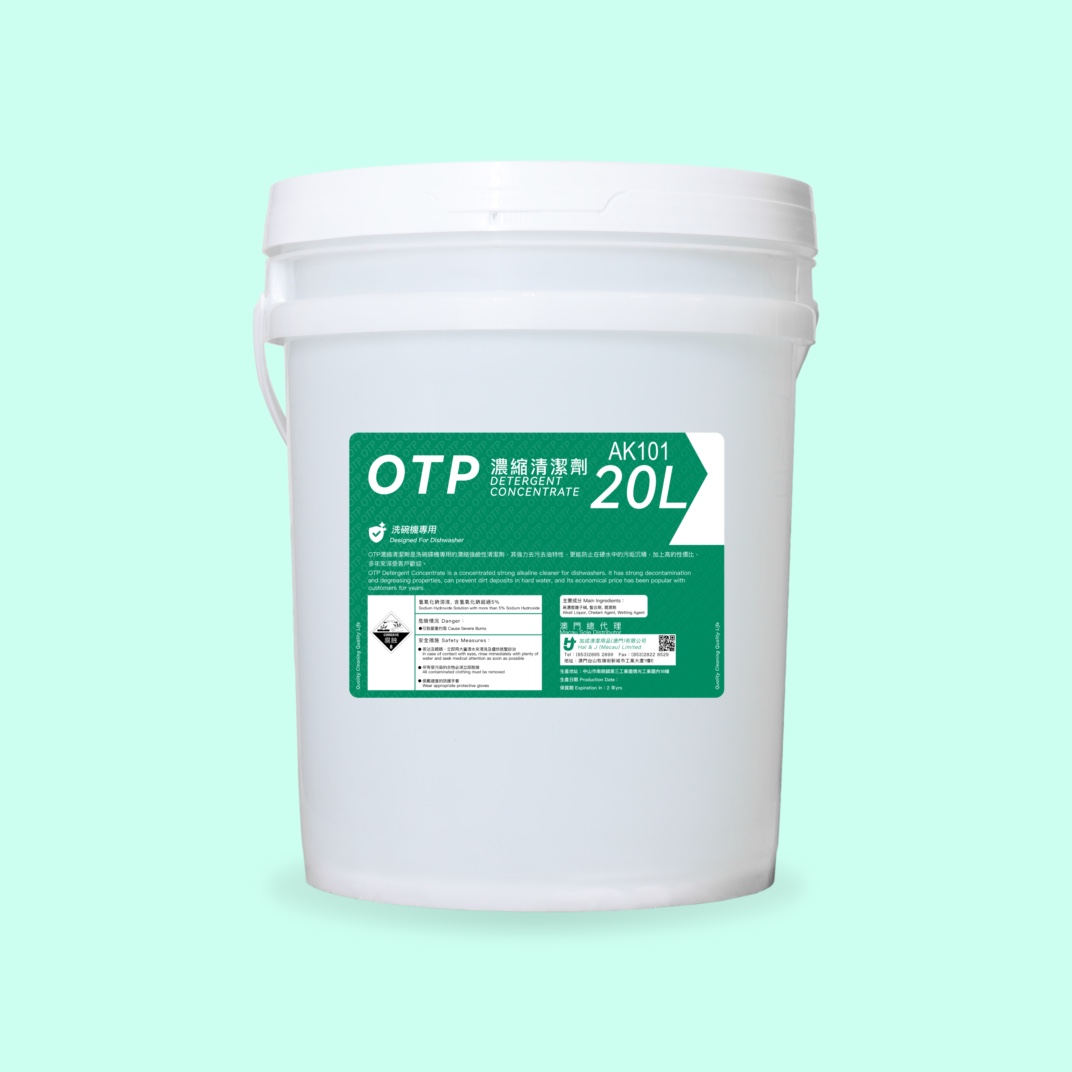 OTP濃縮清潔劑是洗碗碟機專用的濃縮強鹼性清潔劑,其強力去污去油特性,更能防止在硬水中的污垢沉積,加上高的性價比,多年來深受客戶歡迎。
