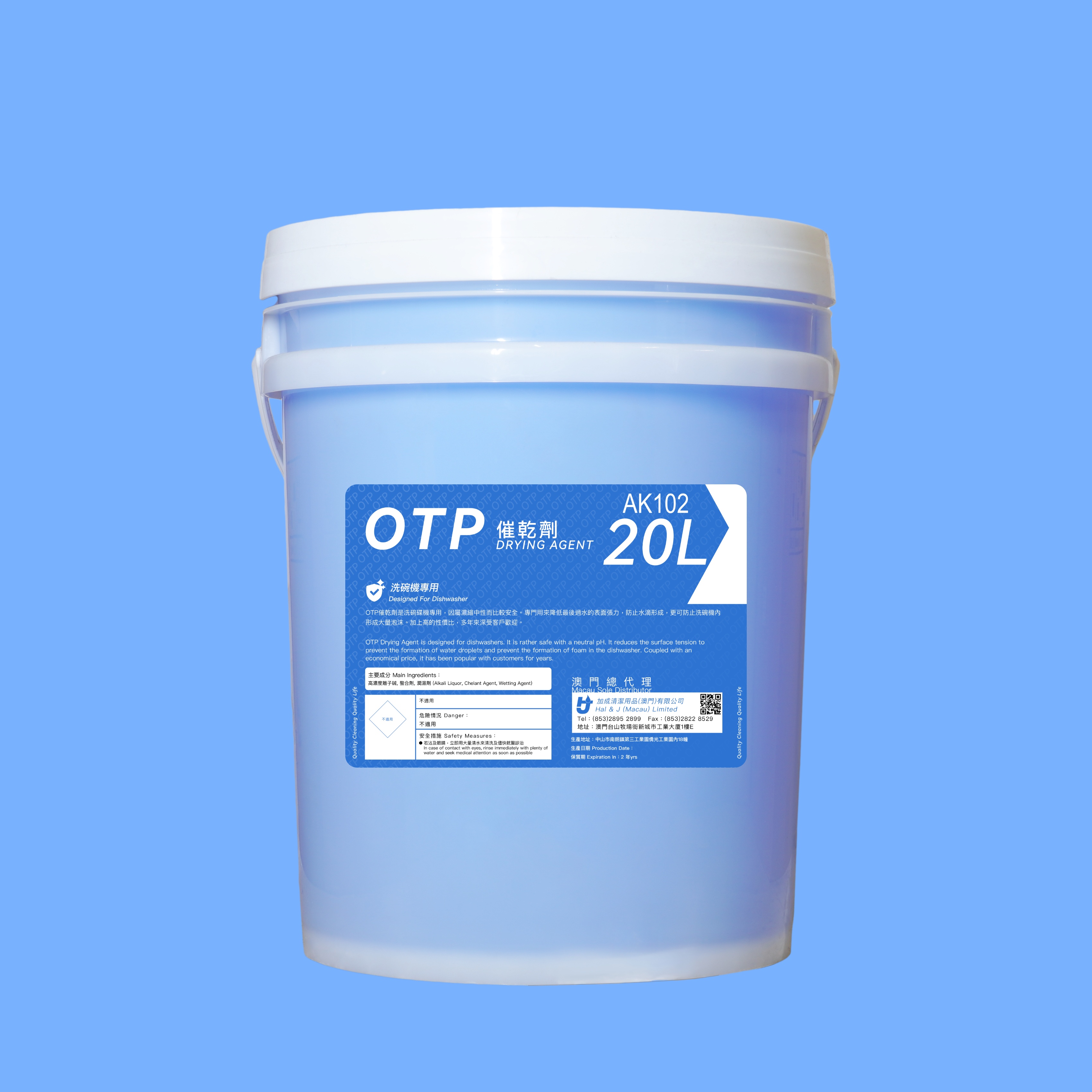 OTP催乾劑是洗碗碟機專用,因屬濃縮中性而比較安全。專門用來降低最後過水的表面張力,防止水滴形成,更可防止洗碗機內形成大量泡沫。加上高的性價比,多年來深受客戶歡迎。